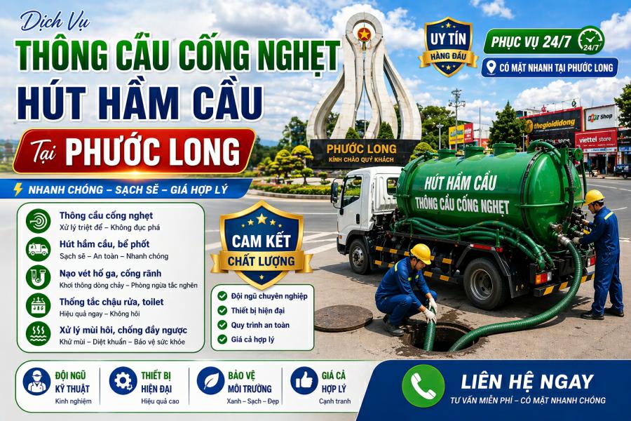 Bạn đang gặp tình trạng cầu cống nghẹt, nước thoát chậm, bồn cầu bốc mùi khó chịu tại Phước Long? Đây là vấn đề phổ biến nhưng nếu không xử lý kịp thời có thể gây ảnh hưởng lớn đến sinh hoạt và sức khỏe gia đình. Dịch vụ thông cầu cống nghẹt tại Phước Long sẽ giúp bạn giải quyết triệt để, nhanh chóng và tiết kiệm chi phí.
