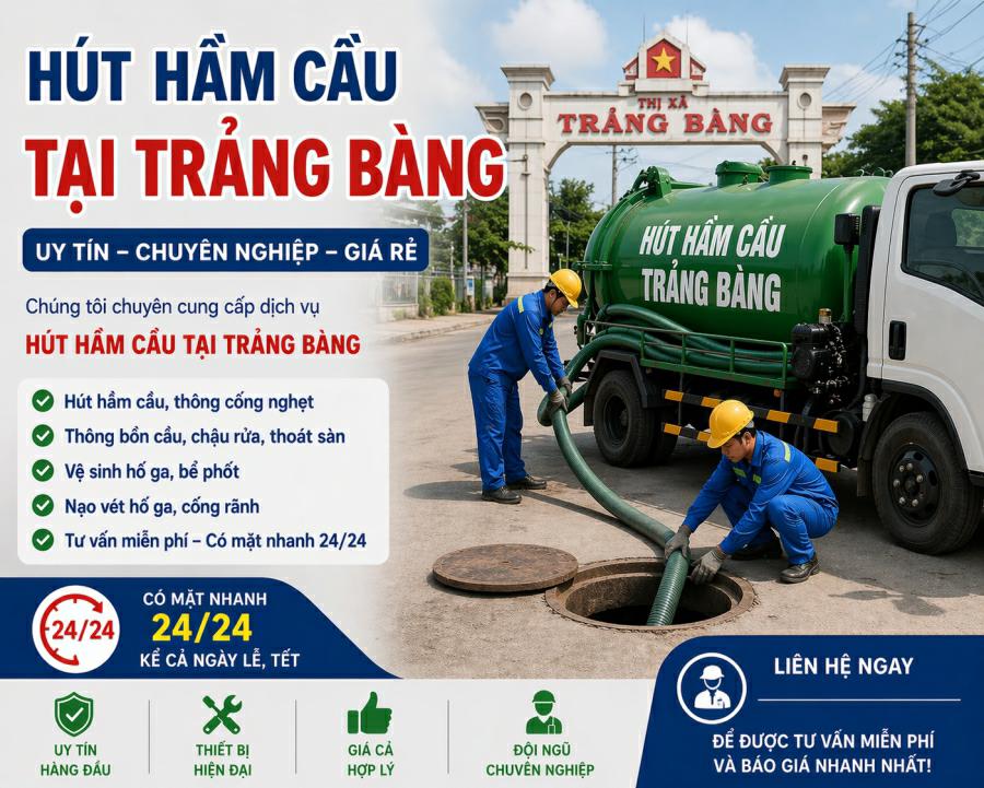 Thị xã Trảng Bàng là khu vực kinh tế trọng điểm của tỉnh Tây Ninh, nơi tập trung nhiều khu công nghiệp quy mô lớn và các khu dân cư sầm uất. Với cường độ sử dụng hệ thống vệ sinh cao tại các khu nhà trọ công nhân, nhà xưởng và nhà phố, tình trạng quá tải hầm tự hoại diễn ra khá phổ biến. Dịch vụ hút hầm cầu tại Trảng Bàng cung cấp giải pháp xử lý chất thải hiện đại, giúp giải quyết triệt để nỗi lo tắc nghẽn, đảm bảo môi trường làm việc và sinh hoạt luôn trong lành.