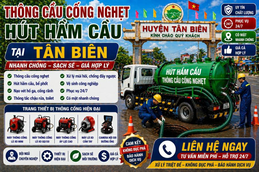 Đừng để tình trạng nghẹt cống làm ảnh hưởng đến cuộc sống của bạn. Hãy liên hệ ngay dịch vụ thông cầu cống nghẹt tại Tân Biên để được hỗ trợ nhanh chóng và hiệu quả.